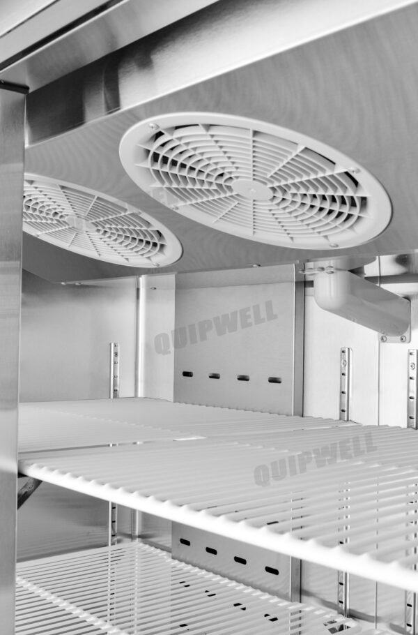 • Cooling System: Fan-forced dynamic refrigeration with 2× powerful evaporator fans and auto defrost to maintain consistent cabinet temperatures between -20℃ to -17℃.